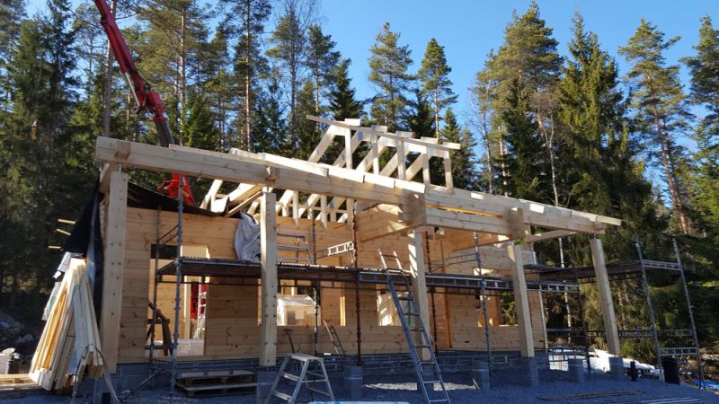 Perustuksien teon jälkeen päästään itse asiaan eli kehikon pystyttämiseen.